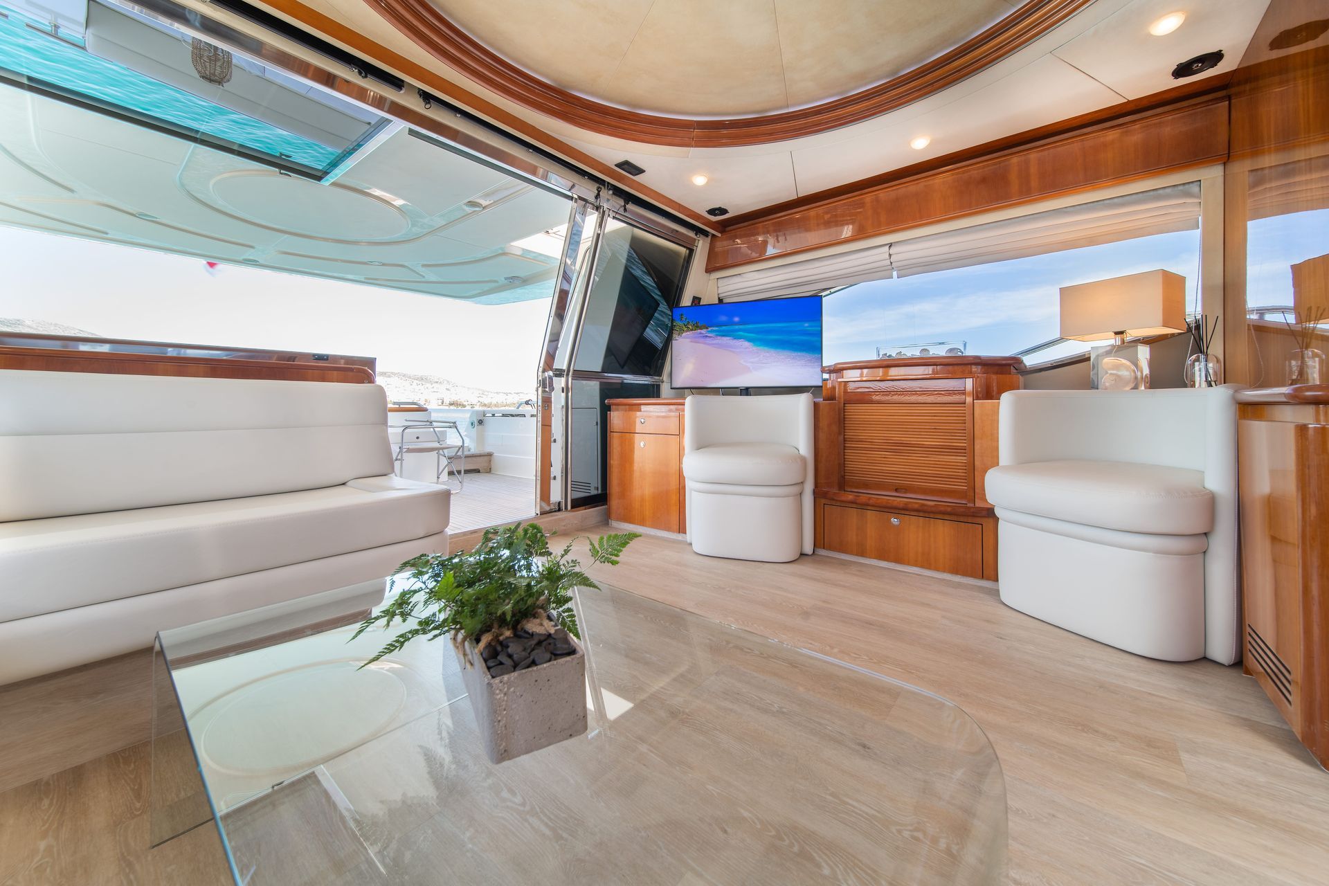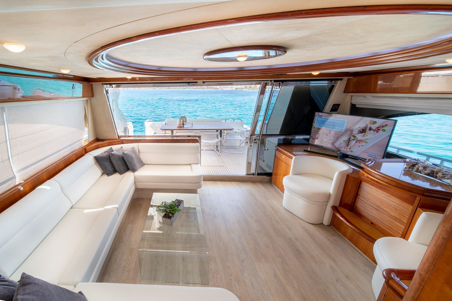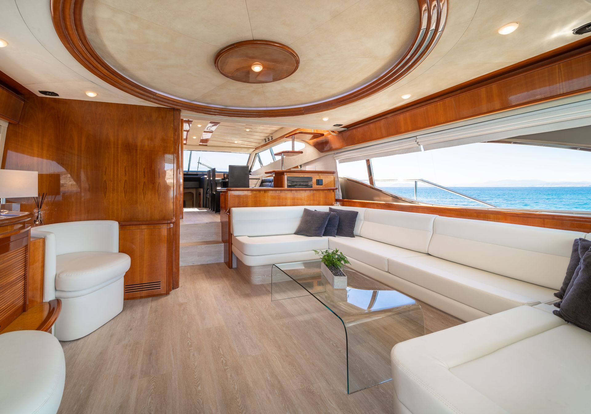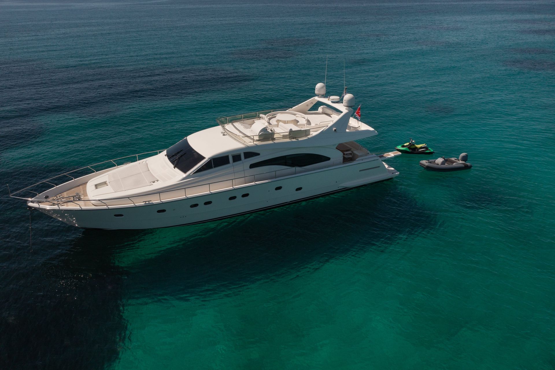 The Ferretti 68 – Simply Brilliant is a luxurious 3-cabin motor yacht, originally built in 2002 and fully renovated in 2024. Docked in the stunning Ornos Bay, in Mykonos Greece, she offers a perfect blend of comfort, style, and modern amenities for an unforgettable yacht charter experience.