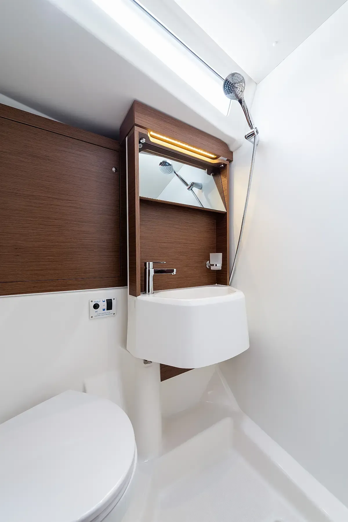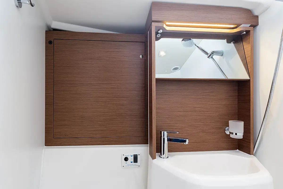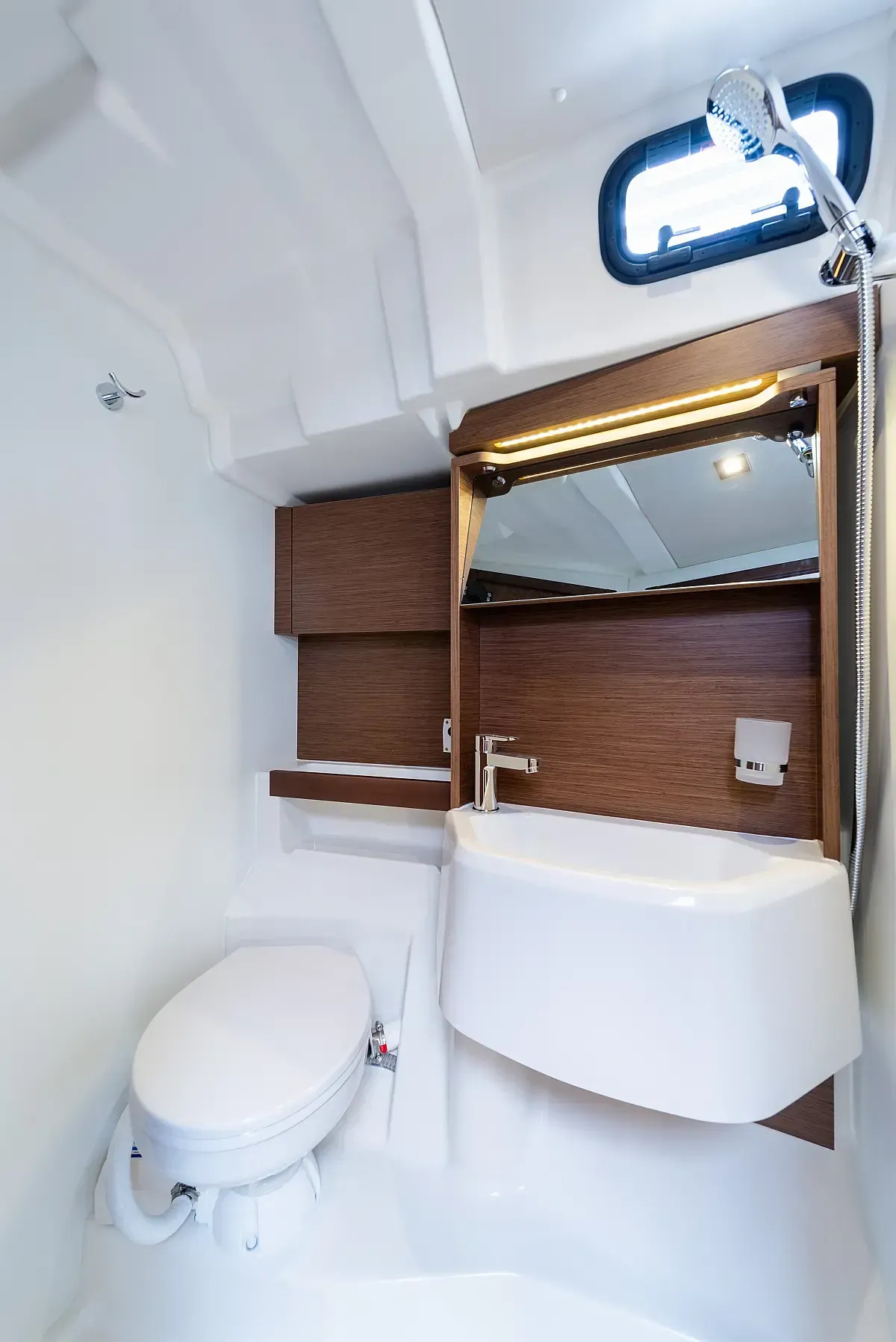 - Sailing Features: Rolling mainsail, electric winches, bow thruster