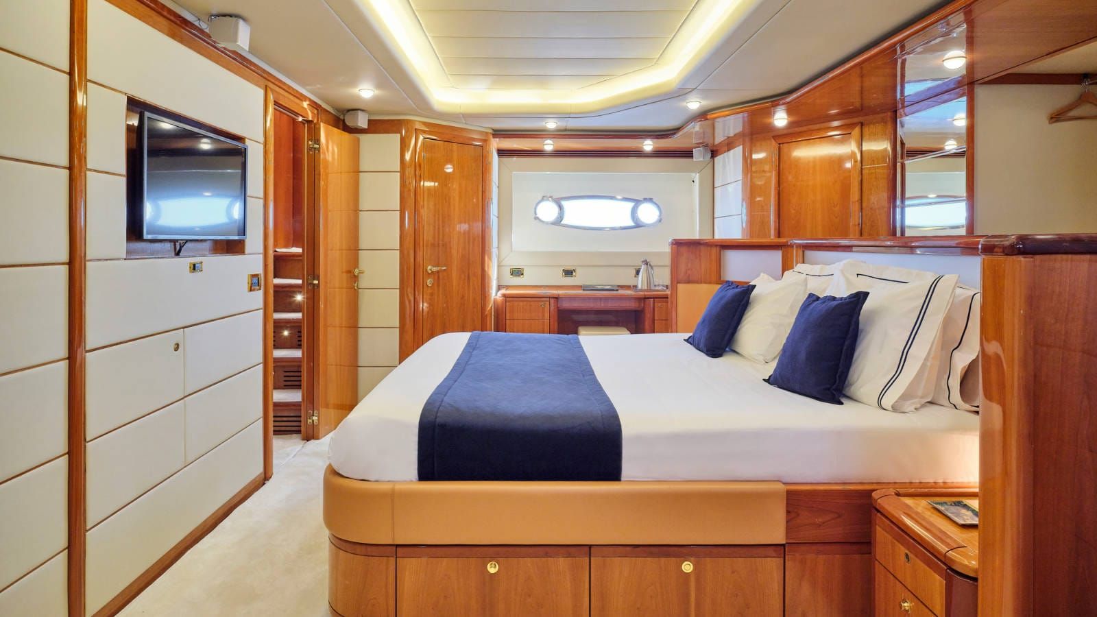 Step aboard and be welcomed into a sophisticated salon with panoramic views, comfort-oriented furnishings and modern systems. The full-beam master suite offers privacy and luxury, while each cabin benefits from ensuite facilities and climate control. The 2021 refit brought contemporary finishes and upgraded entertainment systems