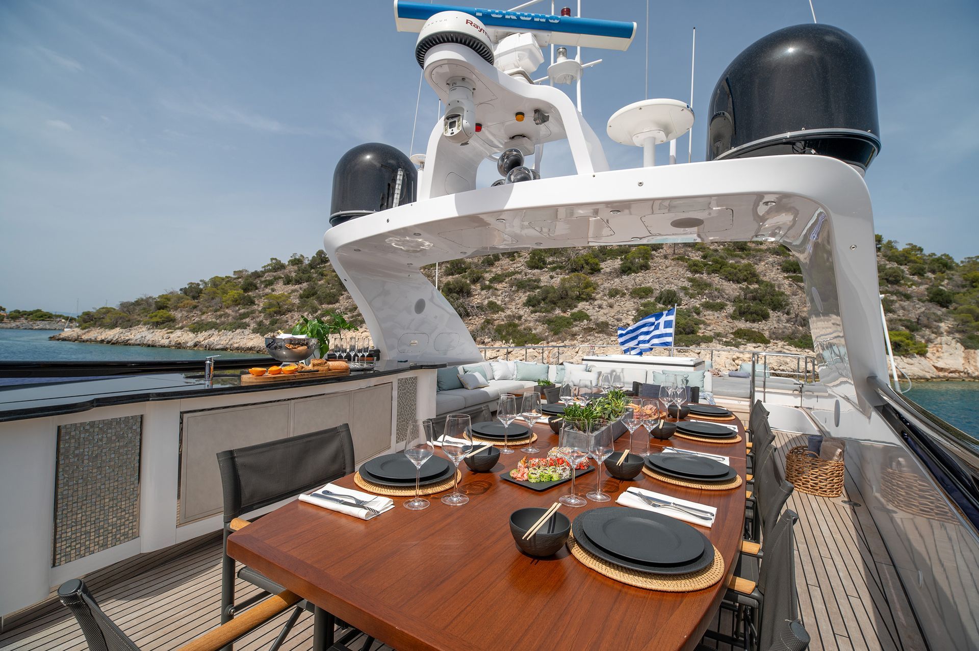 - Elegant aft deck for alfresco dining