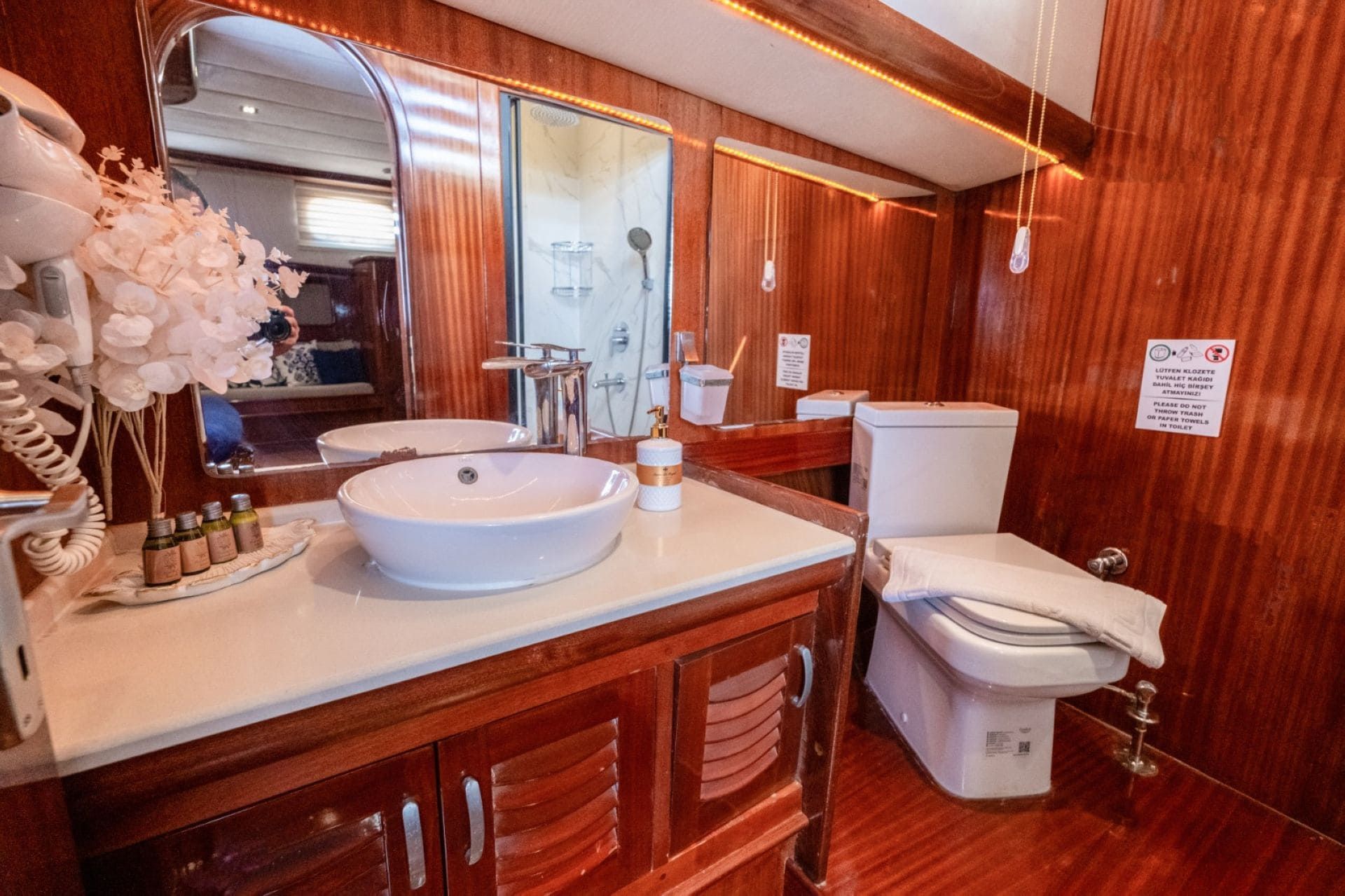 Luce Del Mare features a spacious and tastefully designed interior that evokes a relaxed yet sophisticated atmosphere. With 5 well-appointed cabins, each guest enjoys comfort and privacy. The common salon and dining area are perfect for group gatherings, while the large deck spaces invite you to lounge in the sun or dine al fresco under the stars.