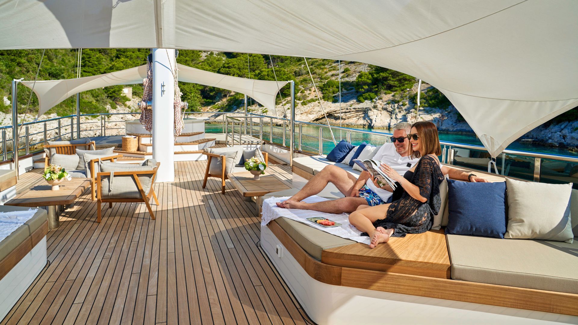 - Swim in crystal-clear bays, dine on deck under the stars, or unwind in the onboard jacuzzi with your favorite drink in hand